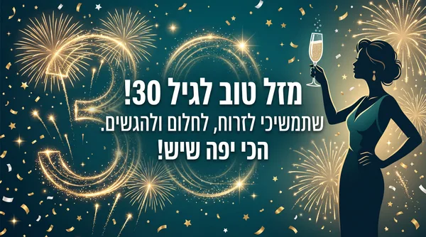 מזל טוב ליום הולדת 30! לחברה הכי טובה, מאחלת לך שנה של קסם, צחוק והרבה אהבה.