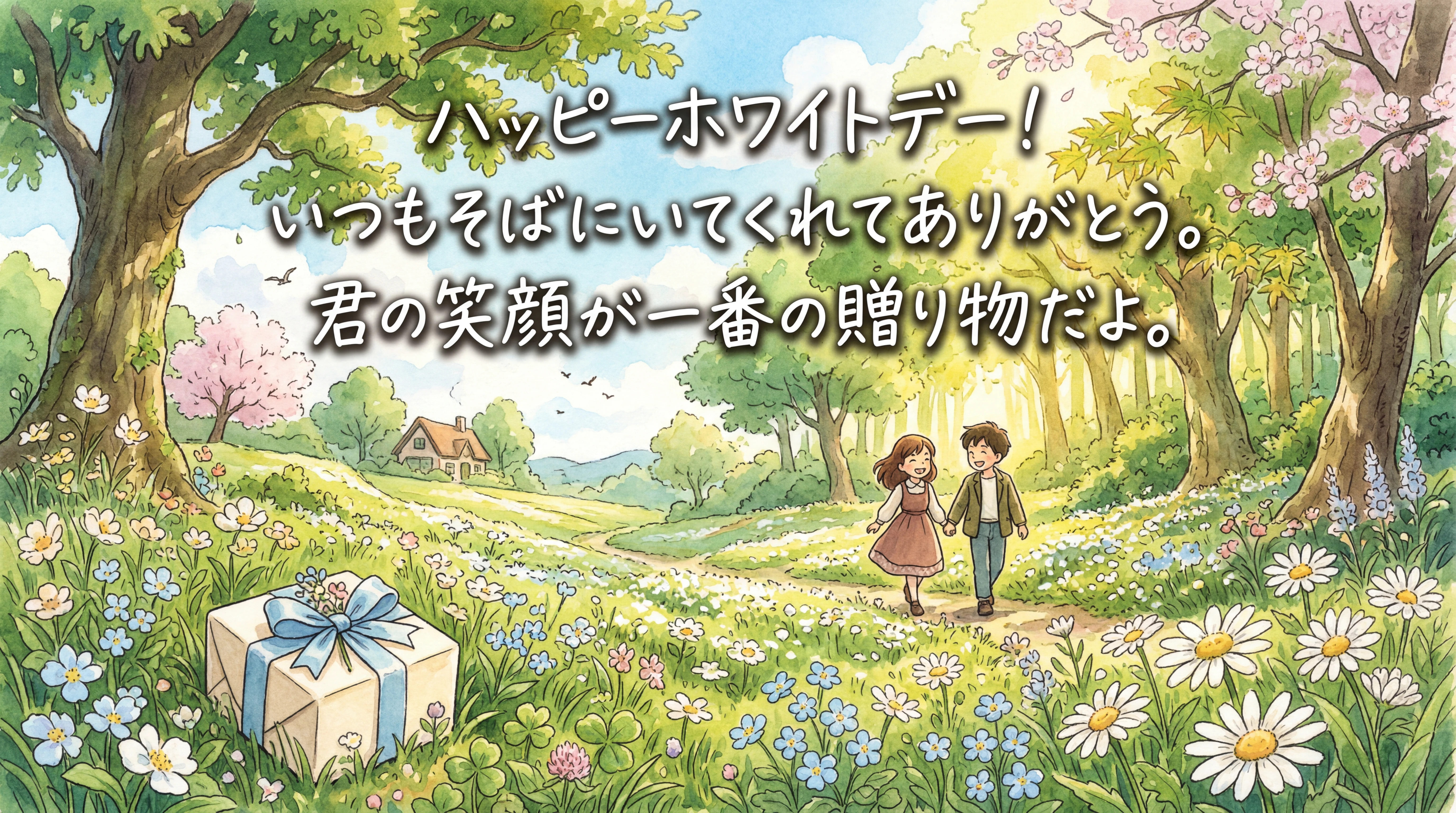 ハッピーホワイトデー! いつもそばにいてくれてありがとう。 君の笑顔が一番の贈り物だよ。