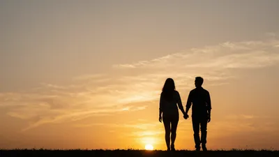 – مسار رمزي للحب، يداً بيد، مزين ببتلات الورد وطبيعة على شكل قلب.