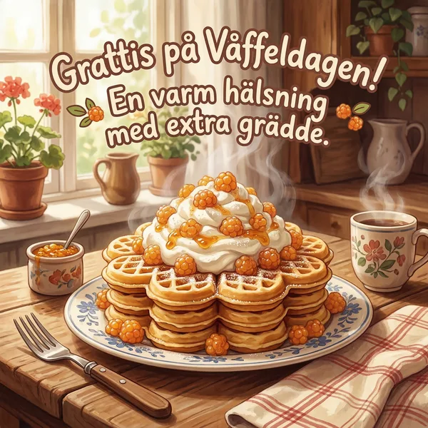 Grattis på våffeldagen! Hoppas din dag blir lika söt som en nygräddad våffla.