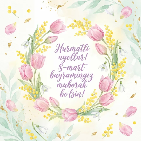 Bahoriy nafosat va ayollik latofati sizni hech qachon tark etmasin! 8-mart bayramingiz muborak bo'lsin!