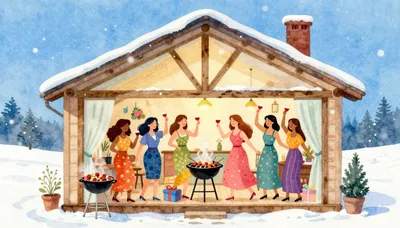 – প্রাণবন্ত রঙের সাথে উৎসবমুখর এবং উদ্যমী শীতকালীন থিমযুক্ত পার্টির দৃশ্য।