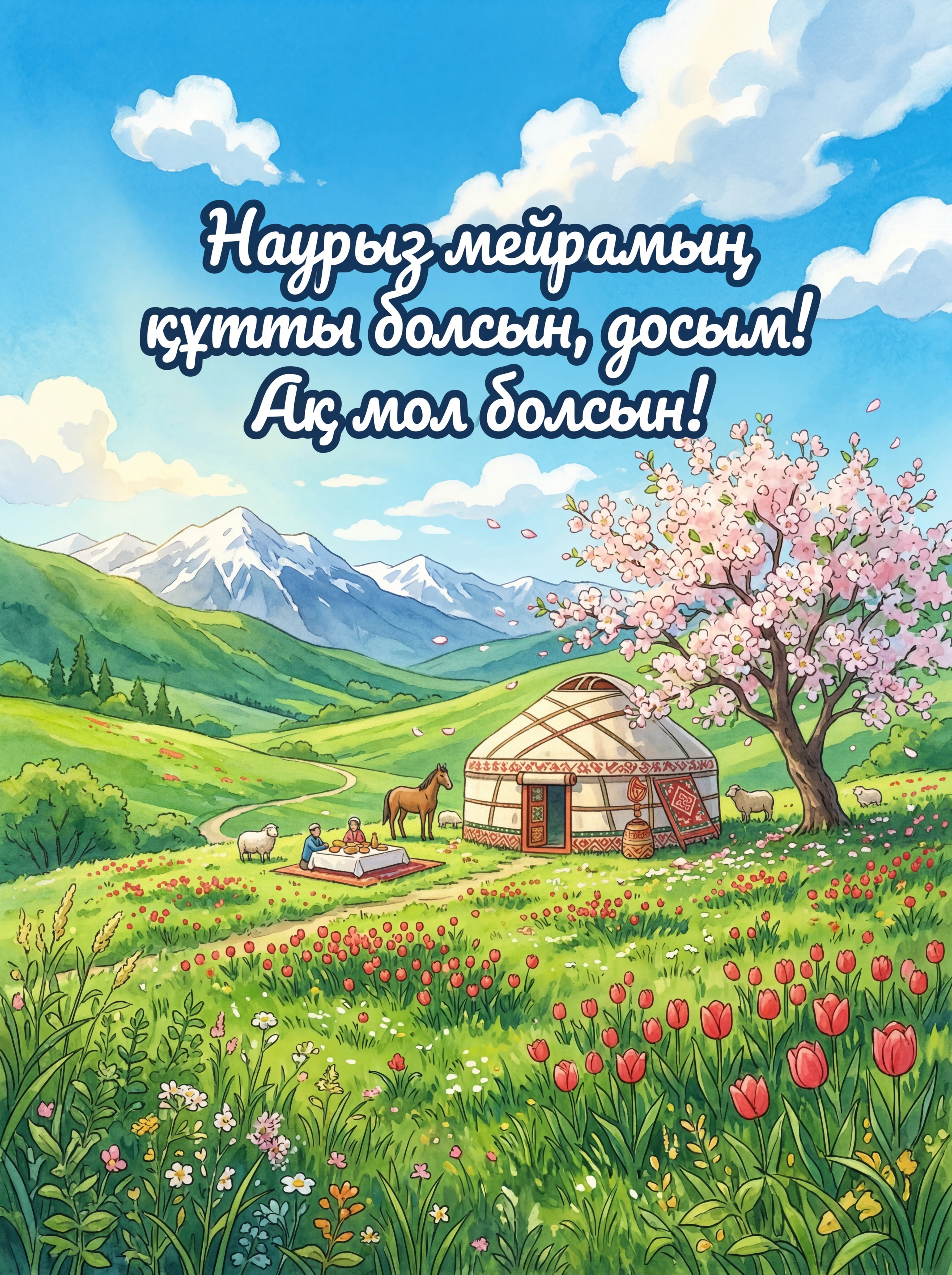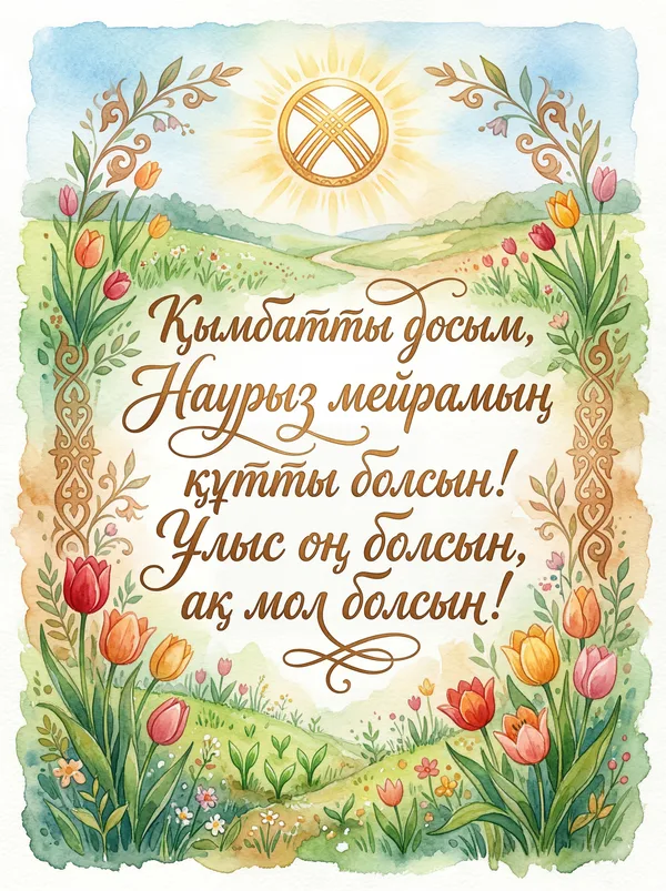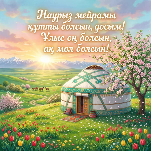 Наурыз мейрамың құтты болсын, досым! Ақ мол болсын, бақыт қонсын!