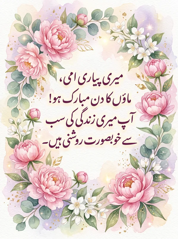 میری پیاری امی، آپ کو ماؤں کا دن بہت مبارک ہو! آپ میری زندگی کی سب سے خوبصورت روشنی ہیں۔