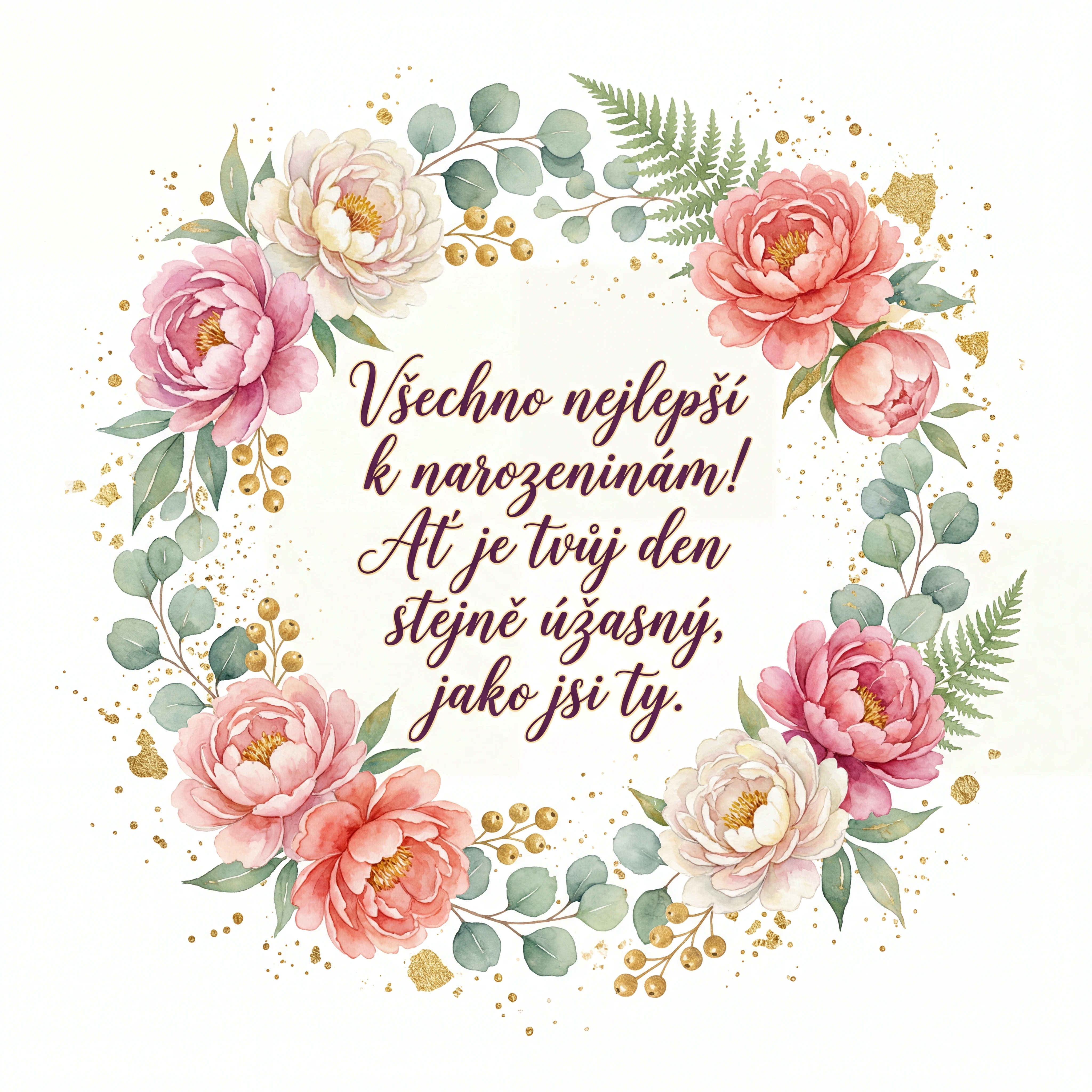 Všechno nejlepší k narozeninám! Ať je tvůj den stejně úžasný, jako jsi ty.