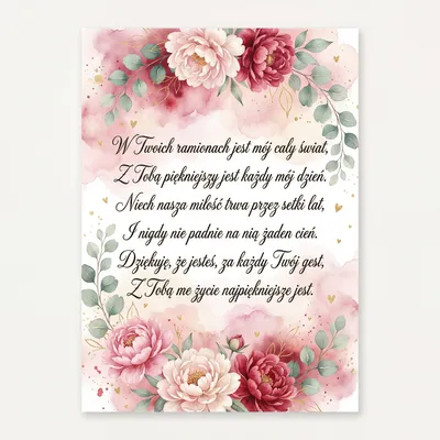 W dniu świętego Walentego, Życzę Ci wszystkiego najlepszego. Niech nasza miłość wiecznie trwa, I blaskiem słońca w sercu gra. Jesteś mym szczęściem, moim snem, Kocham Cię z każdym nowym dniem.