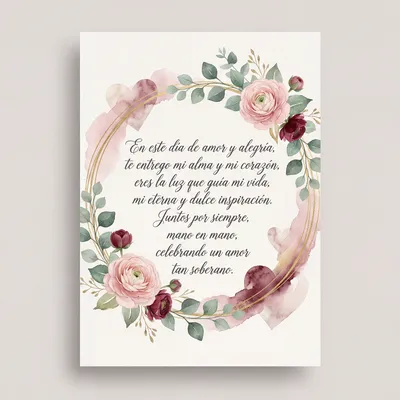 En este día de amor y alegría, te entrego mi alma y mi corazón, eres la luz que guía mi día, y de mis sueños, la dulce razón. Que el sentimiento sea eterno y profundo, uniendo caminos con gran devoción.