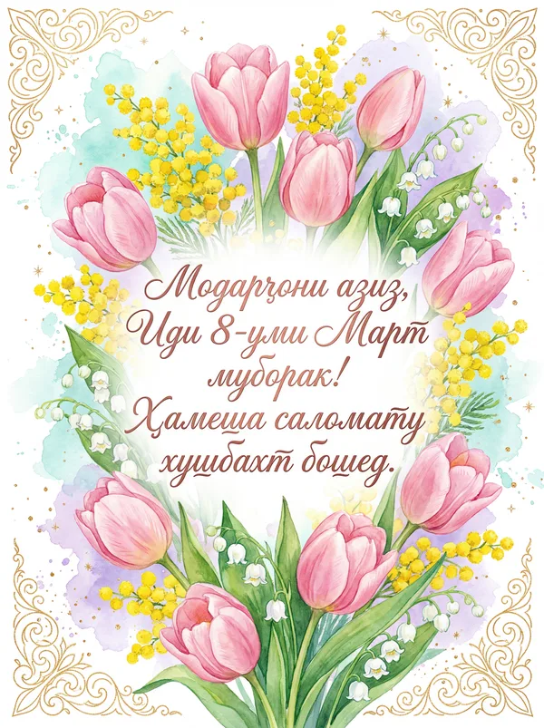 Модари азизам, Рӯзи Модарон муборак! Ҳамеша саломату хушбахт бошӣ.