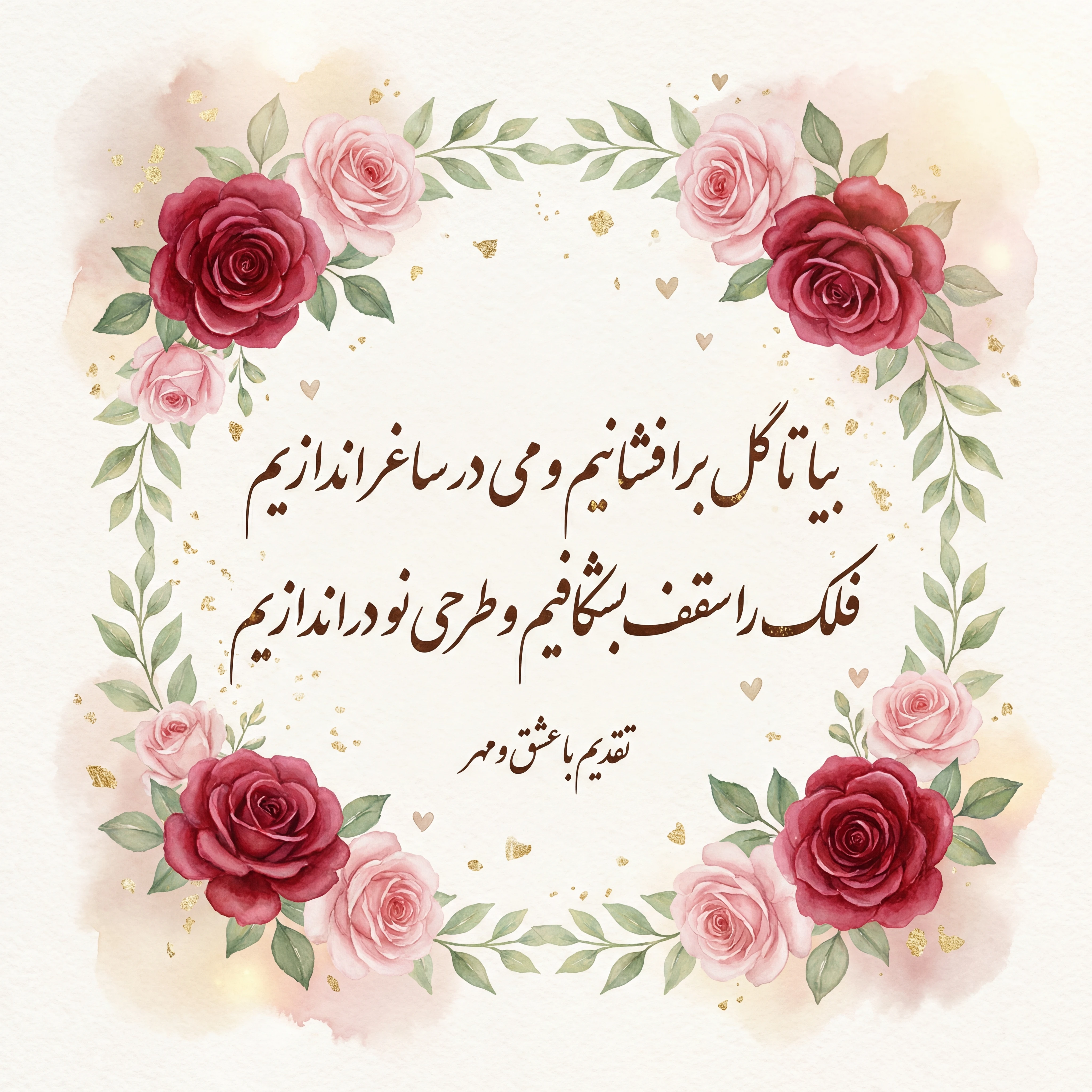 در نگاهت عشق میبارد، عزیز جان من با تو روشن میشود هر لحظه از دوران من ای که نامت بهترین آهنگ در گوش من است ولنتاینت مبارک، ای گل خندان من همدم و همراه من، زیباترین معنای عشق ماندگاری تا ابد در قلب و در ایمان من