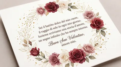 Sei la luce che illumina ogni mio giorno, Il porto sicuro dove sempre ritorno. In questo giorno di dolce passione, Sei tu del mio cuore l'unica ragione. Buon San Valentino, amore mio.