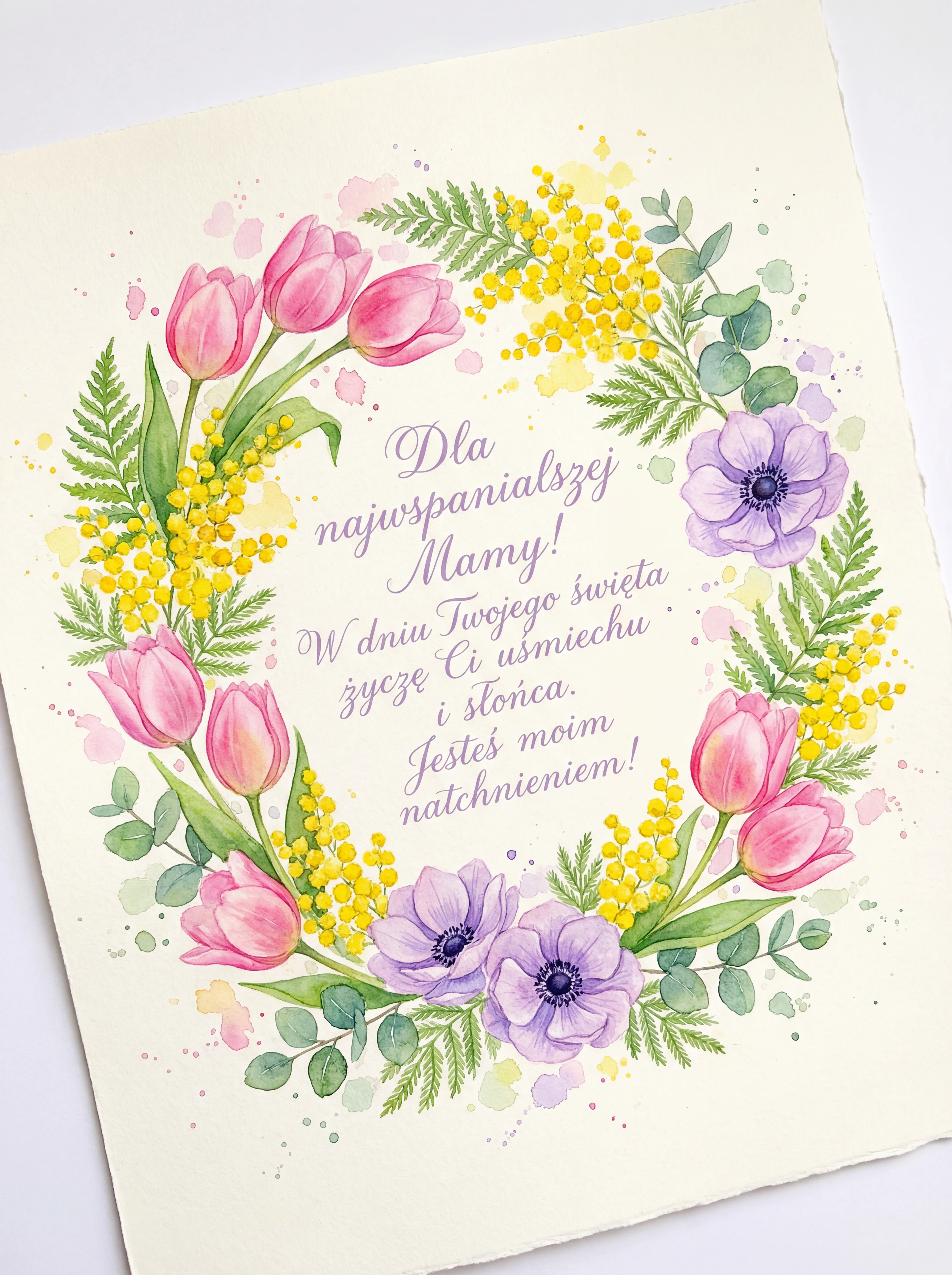 Dla najwspanialszej Mamy! W dniu Twojego święta życzę Ci uśmiechu i słońca. Jesteś moim natchnieniem!