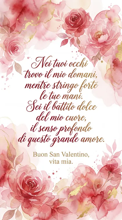 In ogni battito del mio cuore, trovo il riflesso del tuo grande amore. Sei la luce che illumina il cammino, il dono più bello, il mio destino. Insieme per sempre, mano nella mano, ti amo immensamente, mio San Valentino.