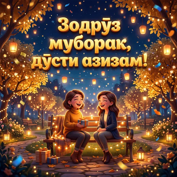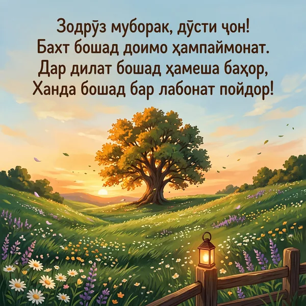 Зодрӯз муборак, дӯсти ҷонӣ, Бошӣ ҳамеша дар амонӣ. Дар дил ҳавасу дар лаб ханда, Хушбахт бимонӣ, эй арзанда!
