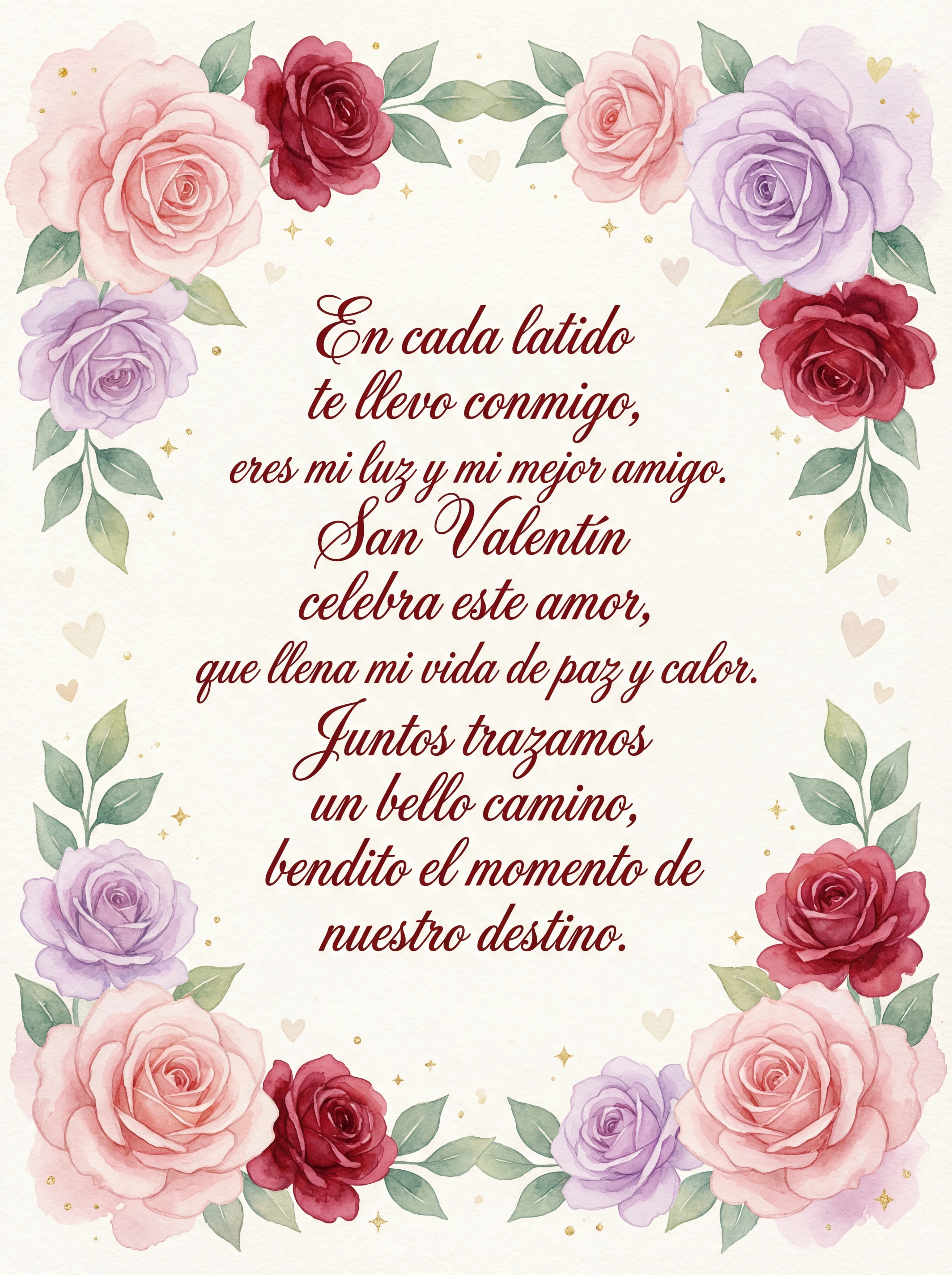 En este día de amor y alegría, mi corazón late solo por ti. Eres la luz que guía mi vida, lo más hermoso que yo conocí. Juntos por siempre, mano a mano, en este camino que hoy caminamos.