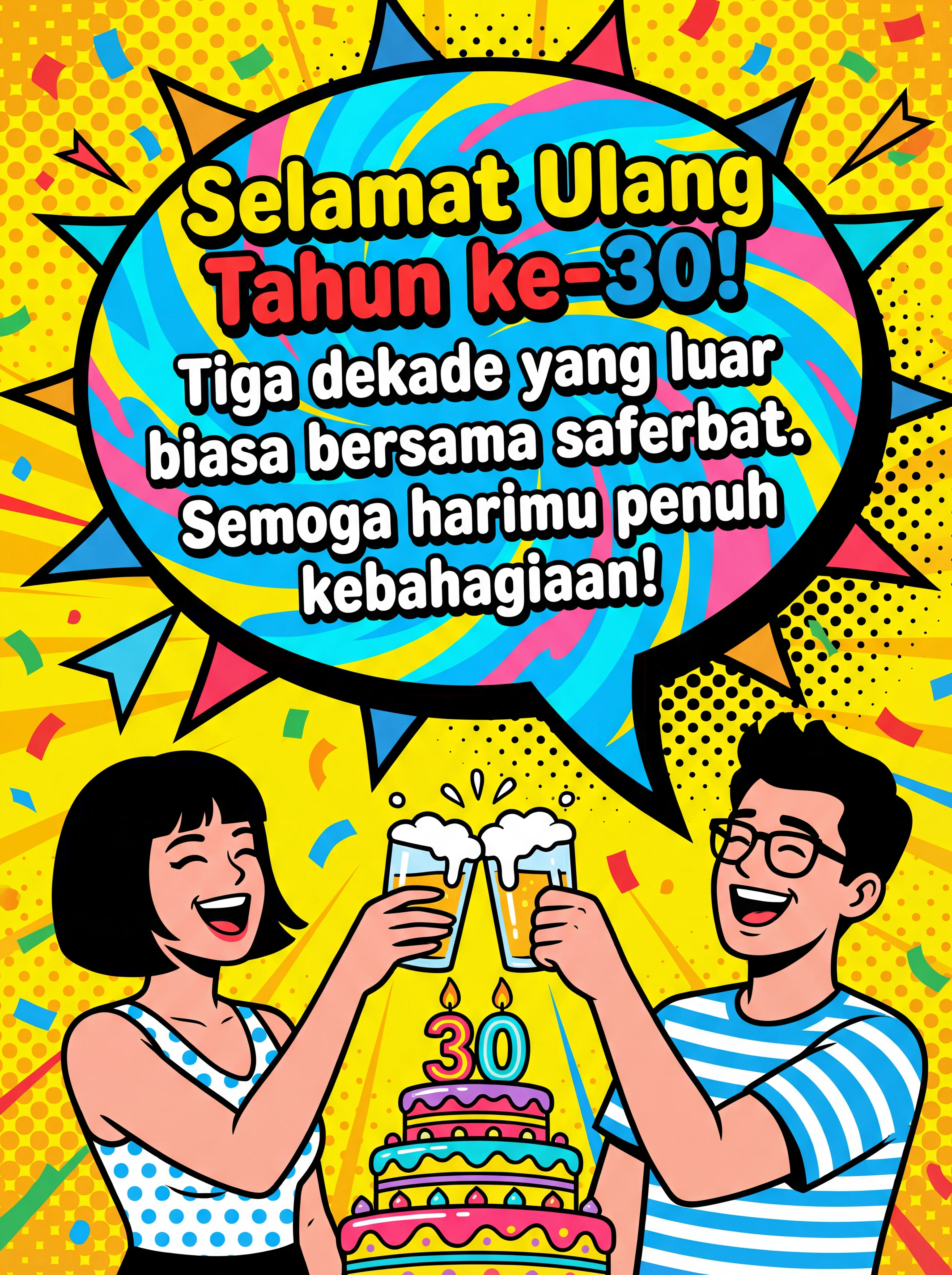 Selamat Ulang Tahun ke-30! Tiga dekade yang luar biasa bersama sahabat terbaik. Semoga harimu penuh kebahagiaan!