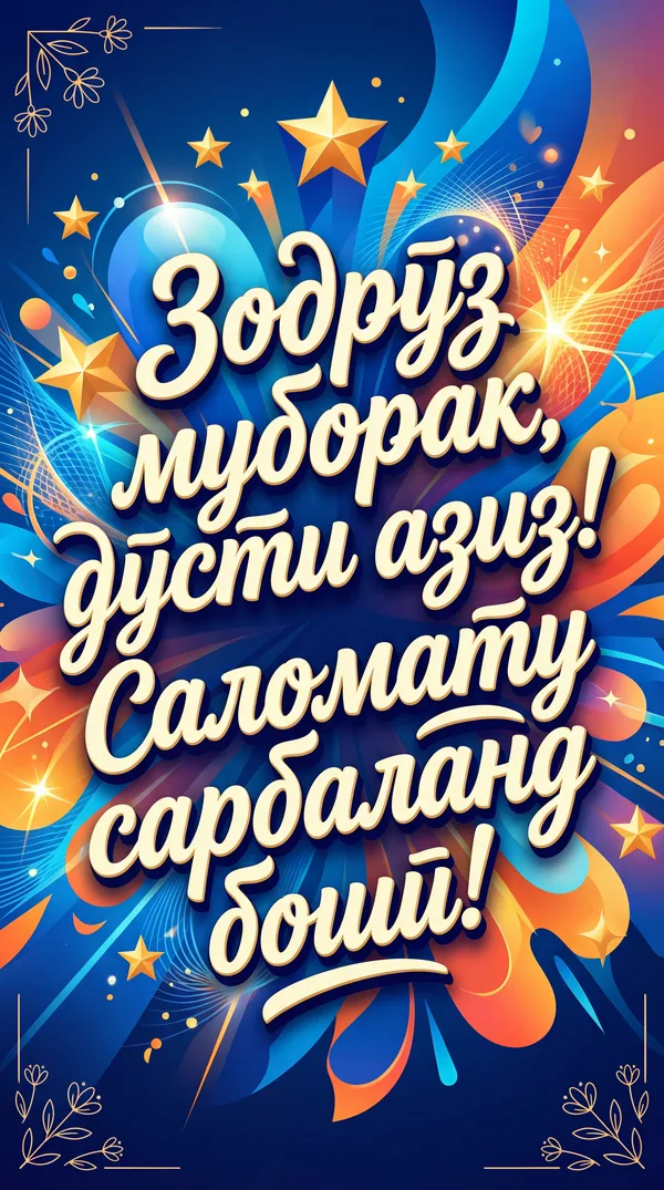 Зодрӯз муборак, дӯсти азиз! Ҳамеша хушбахт ва сарбаланд бошӣ.