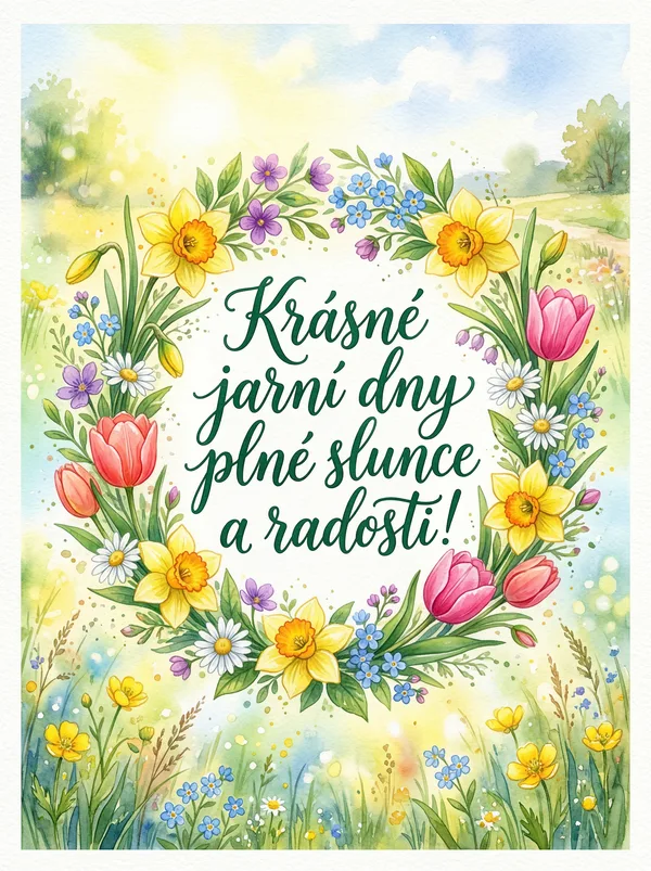 Jak se příroda probouzí a barvy rozkvétají, je čas přivítat pulzující energii jara! 🌷 Sdílejte radost a naději tohoto krásného období s naší kolekcí osvěžujících jarních pozdravů. Ideální pro šíření dobré nálady a oslavu nových začátků se všemi, na kterých vám záleží. ☀️