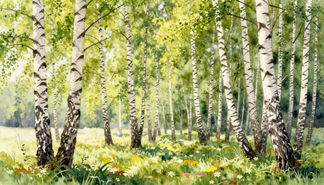 – Lesní oblast s převahou bříz, které jsou známé svou bílou kůrou a jemným vzhledem.