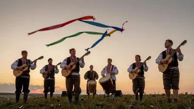 – Hudba s energickými a rytmickými zvuky bubnu dhol.