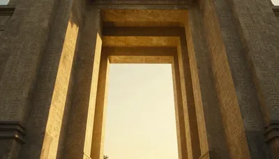 – Tajemná brána do jiné dimenze se zářícími světly a magickou atmosférou.