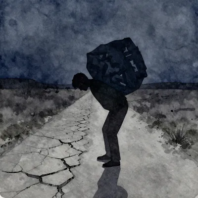 – Vizuální znázornění nošení těžkého emocionálního břemene nebo vnitřního boje.
