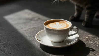 – Enigmatická kočka s pronikavýma očima v městském prostředí, ztělesňující tichou moudrost.