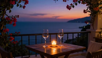 – Osvěžující nápoje vychutnávané během večerního soumraku, často u vody, vytvářející uvolněnou atmosféru.