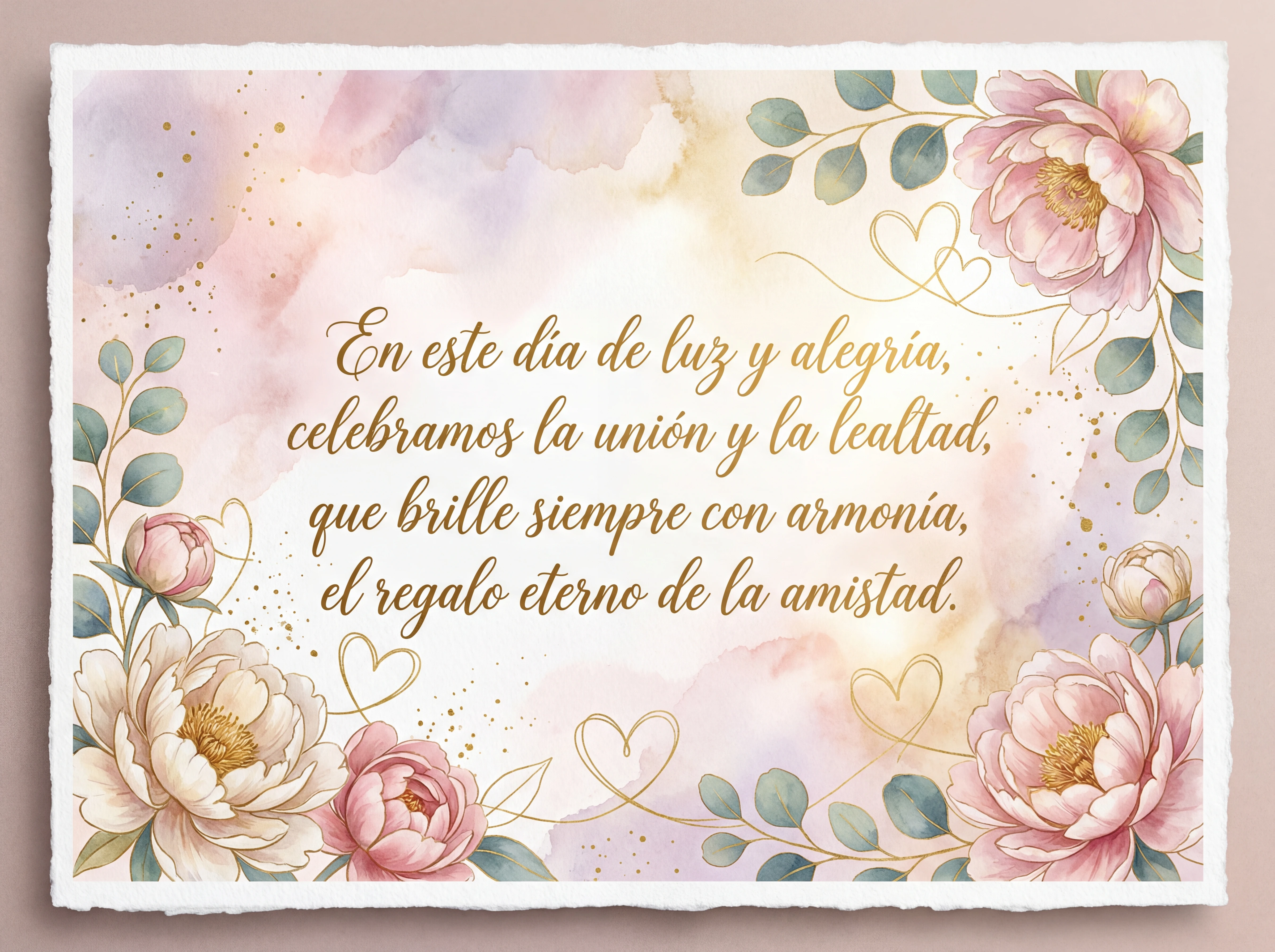 En este día de luz y alegría, celebramos la unión y la lealtad, que brille siempre con armonía, el regalo eterno de la amistad.