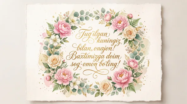 Dunyoda eng aziz insonim onam, Bayramingiz muborak bo'lsin! Doim sog' va baxtli bo'ling.