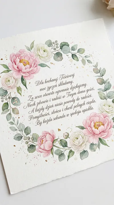 Dla kochanej Babci, serca pełnego, Życzę Ci zdrowia i dnia radosnego. Niech uśmiech na twarzy zawsze gości, W otoczeniu bliskich i wielkiej miłości. Dziękuję za dobroć i każdą chwilę, Którą wspominam zawsze tak mile.