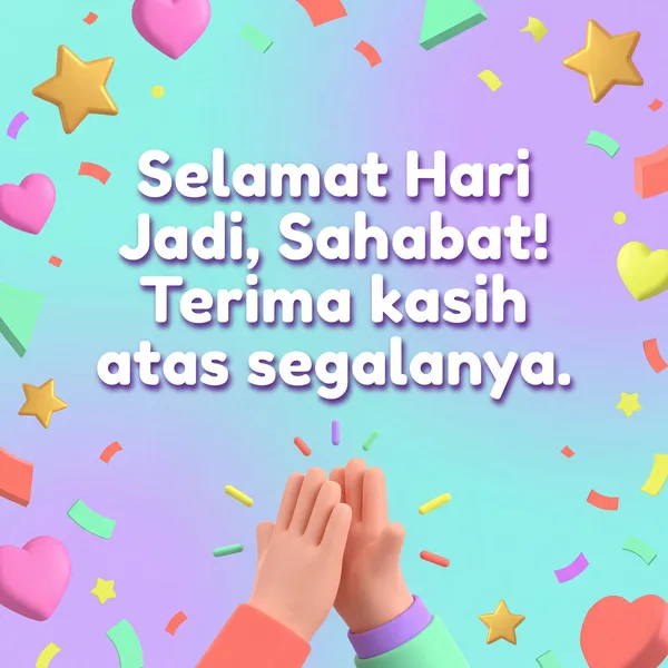 Selamat Hari Jadi buat sahabat sejati! Semoga hari ini penuh dengan kegembiraan dan kenangan manis.