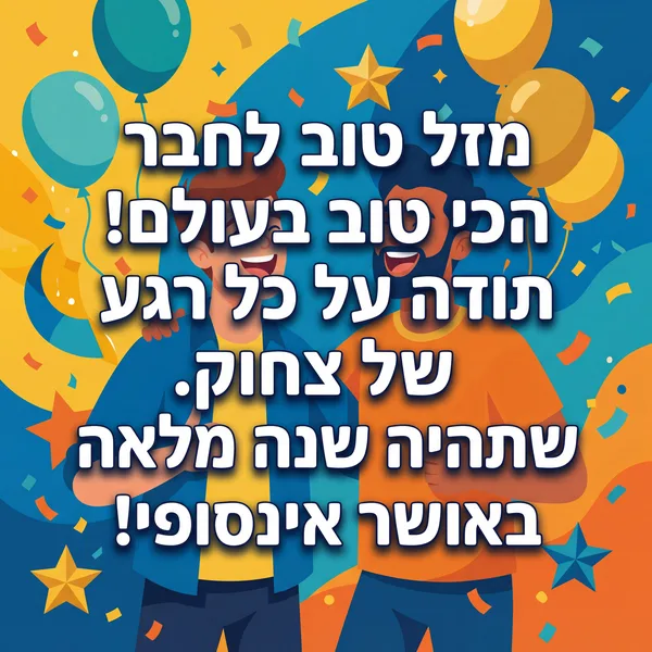 מזל טוב לחבר הכי טוב בעולם! שתמיד תהיה מאושר ומלא בשמחה.