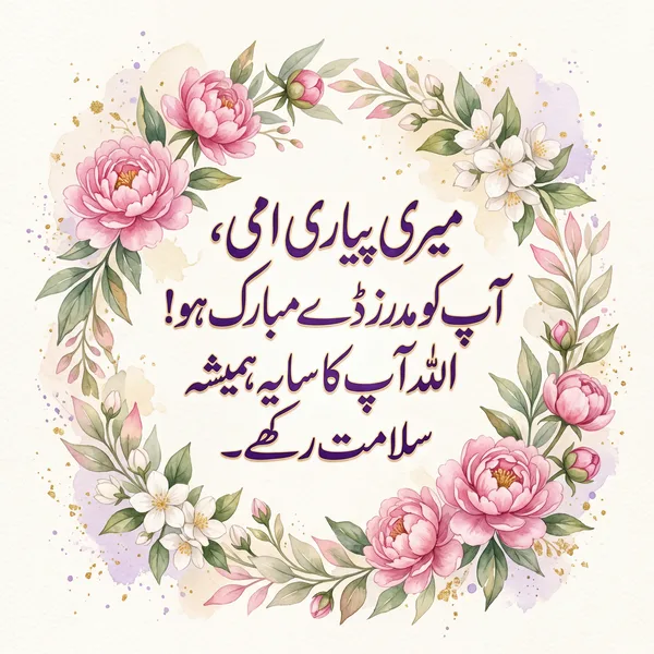 پیاری امی، مدرز ڈے مبارک ہو! آپ کے قدموں تلے میری جنت ہے۔