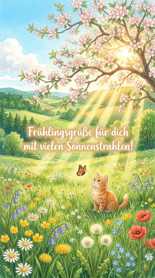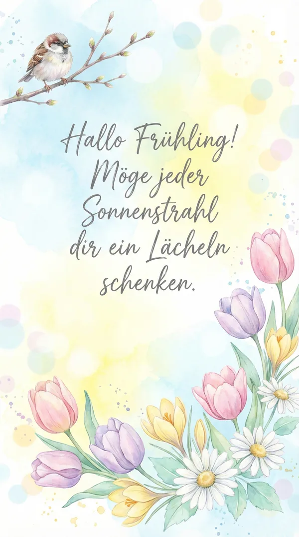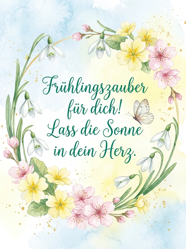 Wenn die Natur erwacht und die Farben erblühen, ist es Zeit, die lebendige Energie des Frühlings willkommen zu heißen! 🌷 Teilen Sie die Freude und Hoffnung dieser wunderschönen Jahreszeit mit unserer Sammlung erfrischender Frühlingsgrüße. Perfekt, um Fröhlichkeit zu verbreiten und Neuanfänge mit all Ihren Liebsten zu feiern. ☀️