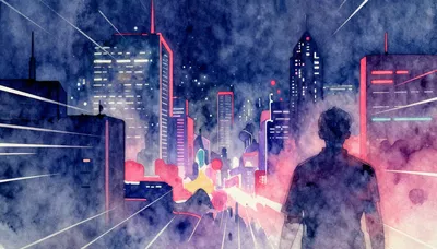 Treten Sie ein in eine Welt, in der Neonträume auf urbanen Verfall treffen. Unsere Sammlung futuristischer Stadtkunst fängt die Essenz einer Tech-Noir-Metropole ein, mit rätselhaften Figuren inmitten leuchtender Wolkenkratzer und regnerischer Straßen. Jedes Stück verbindet digitale Kunstfertigkeit mit einem ausgeprägten Synthwave-Stil der 80er Jahre. Diese Bilder eignen sich hervorragend für kreative Projekte, Web-Designs oder als beeindruckende Hintergrundbilder für Ihre Geräte. Die Kombination aus High-Tech-Elementen und einer melancholischen nächtlichen Atmosphäre schafft eine einzigartige visuelle Erfahrung. Lassen Sie sich von den lebendigen Farben und den tiefen Schatten einer Welt von morgen inspirieren. Unsere Galerie bietet Ihnen eine große Auswahl an hochwertigen Grafiken, die die Faszination der Cyberpunk-Kultur widerspiegeln. ✨