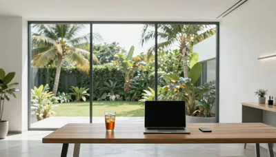 – Eine einfache und aufgeräumte Büroumgebung, die oft ein Gefühl von Ruhe, Leere und moderner Struktur vermittelt.
