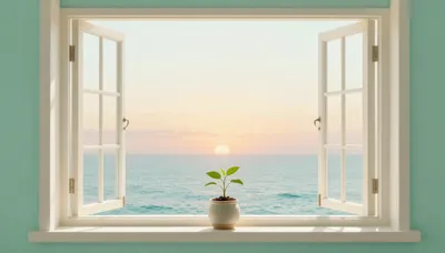 Willkommen in unserer Sammlung ruhiger Fensterblicke, die darauf ausgelegt sind, ein Gefühl von Ruhe und Gelassenheit in Ihren Tag zu bringen. Stellen Sie sich vor, Sie blicken auf einen fernen blauen Ozean, spüren die sanfte Brise durch weiße Vorhänge und genießen die zarten Farben der Frühlingsblumen. Diese Bilder sind perfekt, um eine friedliche Atmosphäre zu schaffen, sei es als Desktop-Hintergrund, für einen Moment der Meditation oder einfach, um Ihren Raum zu verschönern. 🌸✨