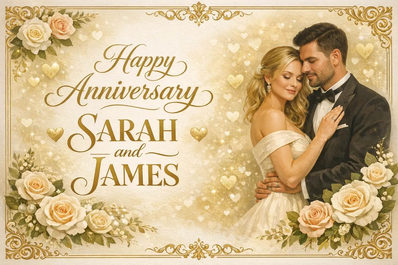 Habe ein Jubiläumsplakat für unseren Hochzeitstag erstellt – so romantisch und wunderschön! Der Vintage-Stil mit unserem Foto sieht fantastisch aus. Die beste Geschenkidee zum Jahrestag!