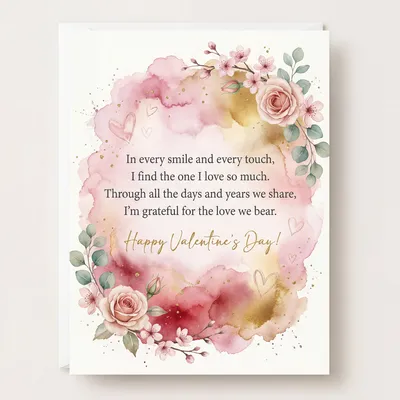 To my dear spouse, my heart's delight, You make my world so warm and bright. In every smile and gentle touch, I love you, darling, very much. Through all the years and days we share, I'm grateful for your love and care. Happy Valentine's Day!