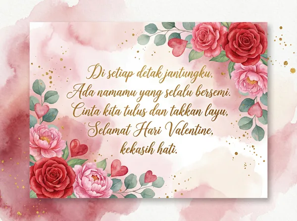 Di hari kasih sayang yang penuh makna, Cintaku padamu takkan pernah sirna. Engkau cahaya di dalam jiwaku, Selamanya aku ingin bersamamu.