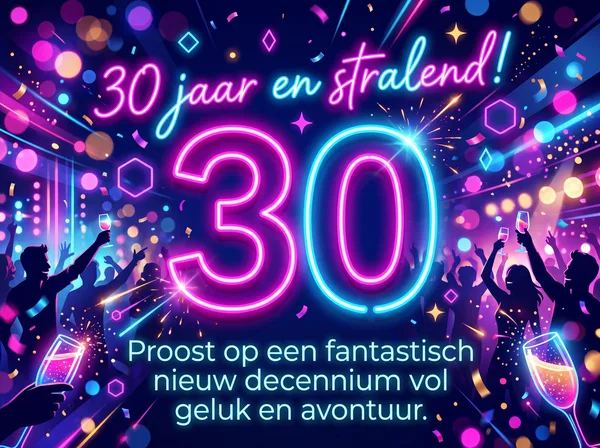 Dertig jaar, een prachtige tijd, Vol dromen, kracht en vrolijkheid. De wereld ligt nu aan je voeten, Met nieuwe kansen om te ontmoeten. Geniet van elke stap die je zet, Maak van deze dag je mooiste pret. Proost op de toekomst en op wie je bent, De beste dertiger die ik heb gekend.