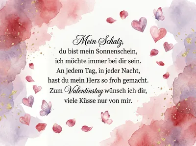 Du bist mein Glück, mein Sonnenschein, will immer an deiner Seite sein. Mein Herz schlägt nur für dich allein, du sollst mein Valentinsschatz sein.
