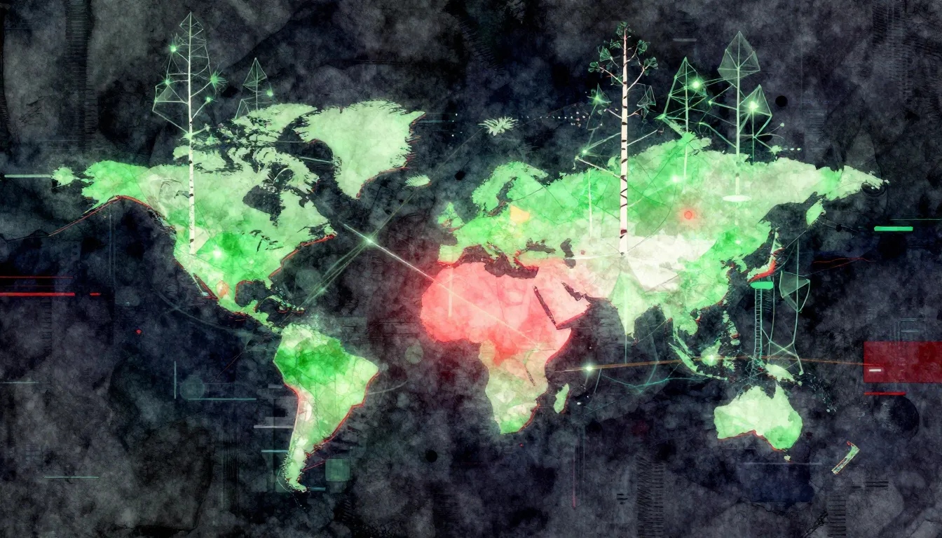 – digital landscape with abstract forms and a vibrant color palette