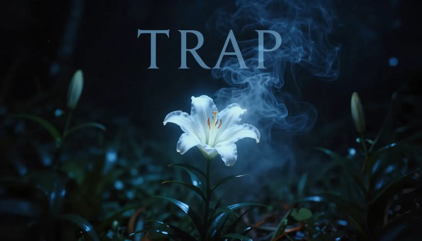 – an ethereal garden setting with a dark, mysterious, and atmospheric tone