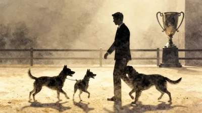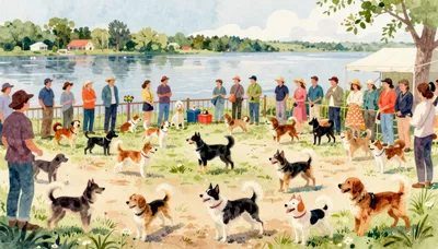 – Dynamic watercolor illustrations capturing the excitement and grace of dogs at a show.