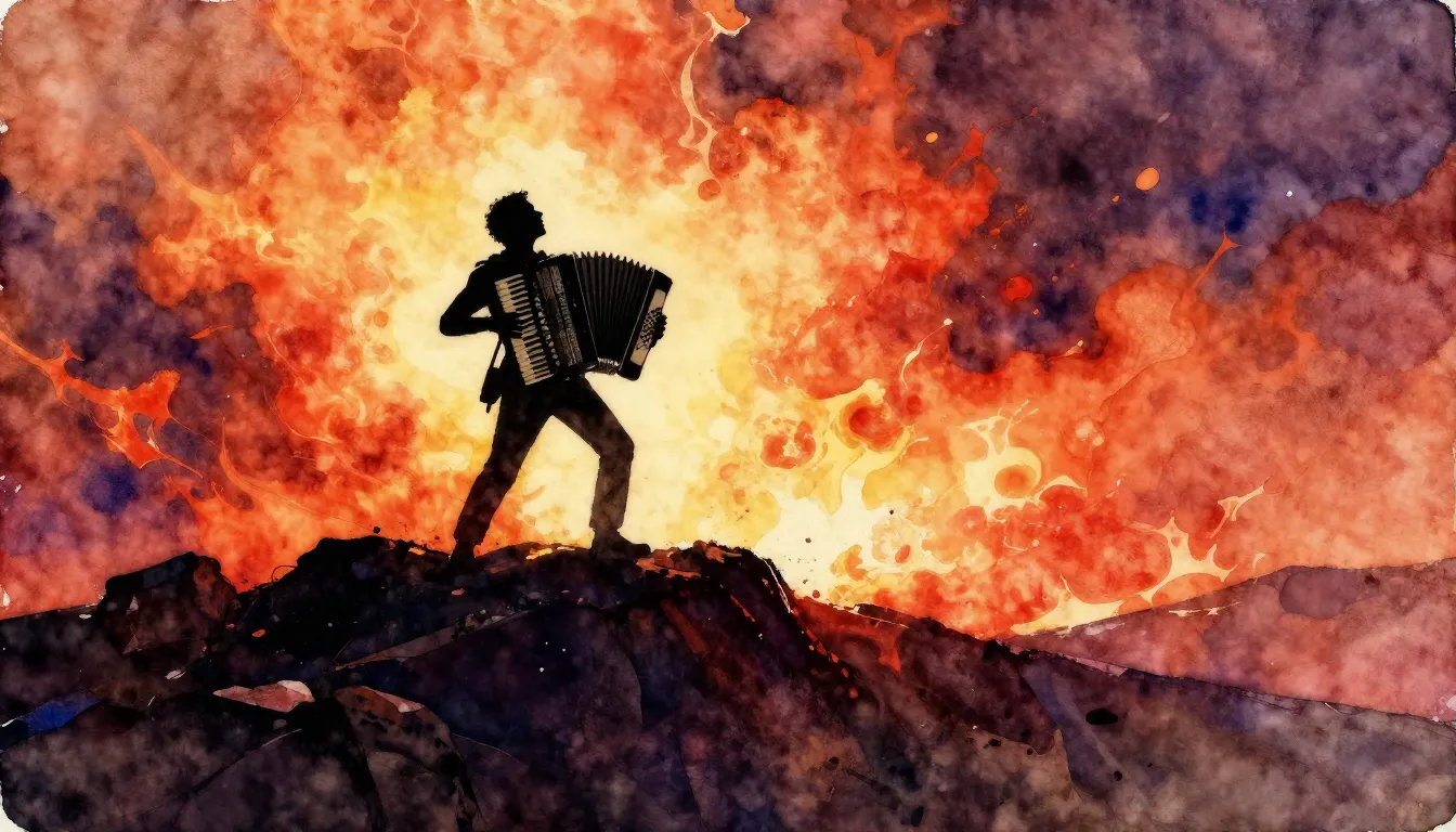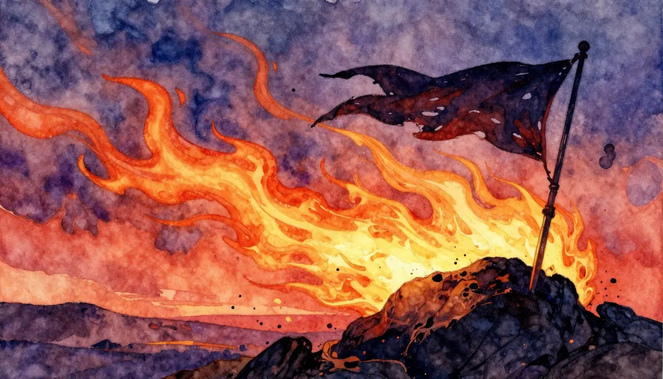 – a landscape dominated by fire, smoke, and burning elements
