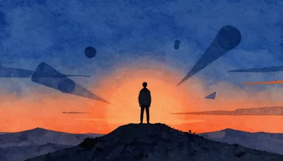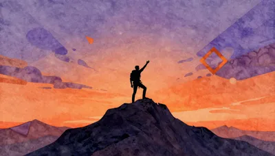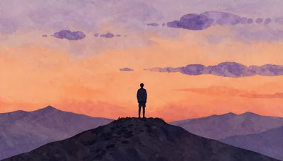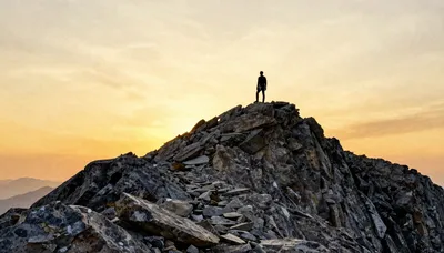 – Scenic view of a person on a mountain peak during a vibrant sunset.