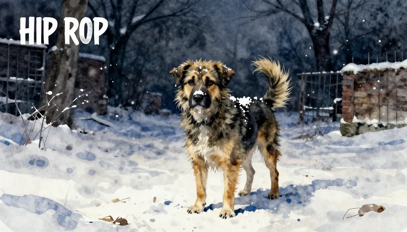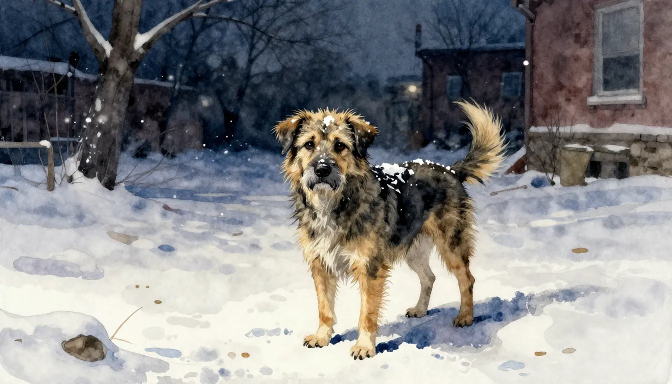 – a homeless dog in an urban environment, often conveying loneliness