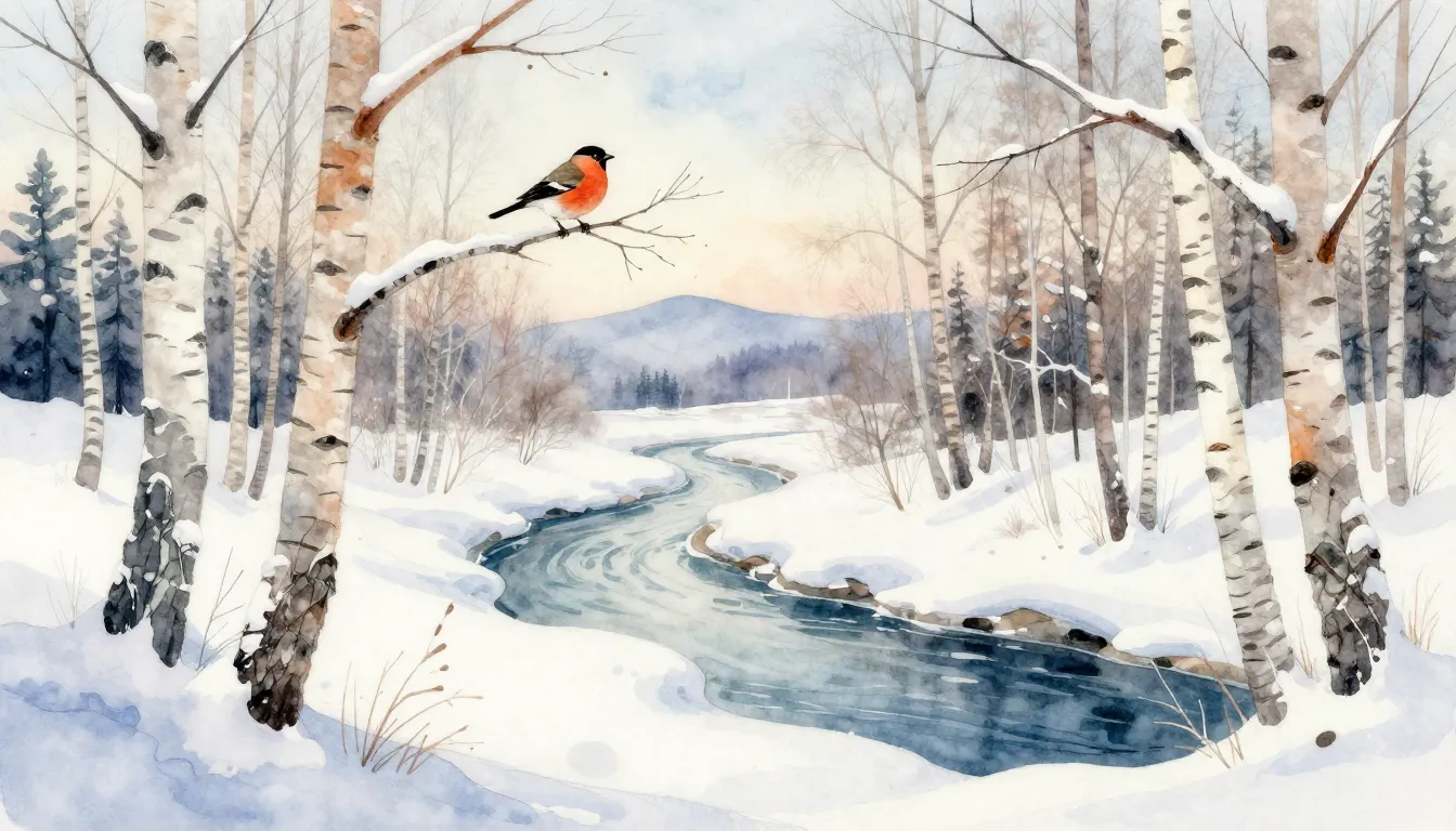 – winter scenes depicted in a vibrant watercolor art style