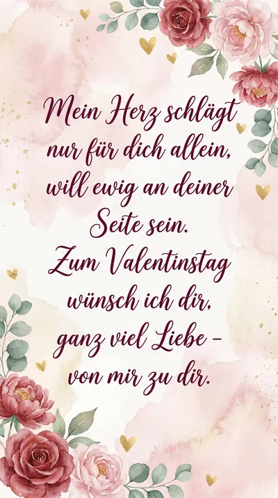 Du bist mein Glück, mein heller Stern, ich hab' dich über alles gern. An jedem Tag, zu jeder Zeit, schenkst du mir Geborgenheit. Mein Herz schlägt nur für dich allein, will ewig an deiner Seite sein.